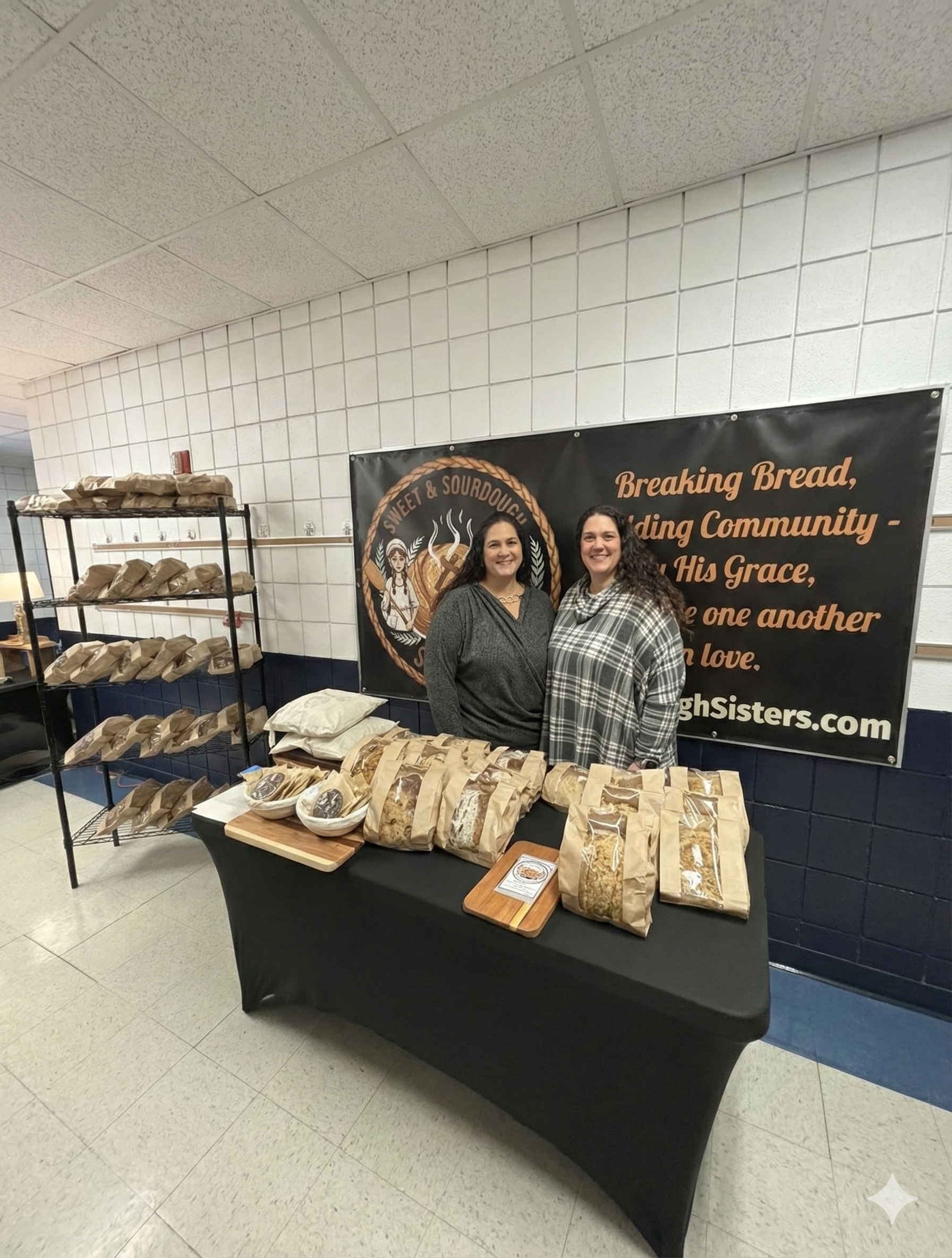 The Sweet & Sourdough Sisters' debut at the Jingle Bell Bazaar was an overwhelming success! Thank you so much to everyone who stopped by our very first market today. We are absolutely thrilled to announce that we completely sold out of our entire inventory, including every last loaf of Classic Sourdough and all of our specialty Caramel Apple Cider and Triple Chocolate Chip Peppermint Cookies!